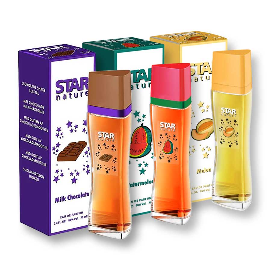 Cégünk saját gyártású parfüm családja a STAR NATURE Parfüm sorozat. Cégünk legsikeresebb Női Parfümjei! A Vattacukros parfüm szinte minden hálózatban kötelező, hogy szerepeljen a polcokon! Megtalálhatóak a TESCO,  AUCHAN, DM, ROSMANN, EURO FAMILY polcain, hogy csak egy párat említsünk.